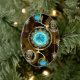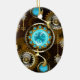 Turquoise lenses with antique watch with brass gears and golden keys on rusty, brown background. Steampunk style.