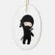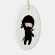Joyeux dessin animé en ninja habillé en noir avec un bras levé en agitant. On peut voir le katana d'épée japonais traditionnel attaché par-dessus son épaule.