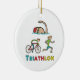 Le design du triathlon montre des compétiteurs de natation, de course et de cyclisme avec le mot Triathlon dans le bas. Un graphisme amusant pour les personnes qui aiment un défi physique difficile.
