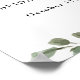 Cette charmante affiche de bienvenue pour une baby shower dispose de feuilles vertes minimalistes peintes à l'aquarelle sur un fond blanc épuré. Le texte serif moderne mélangé à une typographie script tendance ajoute une touche de fraîcheur pour rendre ce panneau parfait pour une baby shower rustique, minimaliste ou élégante avec une touche botanique en plein air.