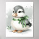 Canard mignon en noir et blanc avec une touche de couleur sauge sur le ruban.