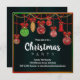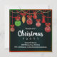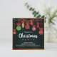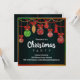 Une invitation festive à la fête de Noël avec des décorations de Noël suspendues et des ornements d'arbres de Noël en rouge, or et vert dans un cadre coloré de couleurs de Noël, le tout mis sur un arrière - plan noir dramatique pour faire vraiment éclater les ornements. Tous les détails peuvent être customisés pour convenir à votre propre célébration.