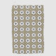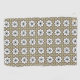 Two images of bathroom accessories with geometric floral patterns. The top image shows towels hanging, and the bottom shows a folded washcloth. The pattern features white flowers on a beige background, creating a modern, decorative look."