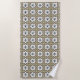 Two images of bathroom accessories with geometric floral patterns. The top image shows towels hanging, and the bottom shows a folded washcloth. The pattern features white flowers on a beige background, creating a modern, decorative look."