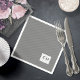 Ein kühner, dekorativer Schriftart erweckt sofort den Eindruck und Set für die meisten Teile dieser modernen, minimalistischen Hochzeitssuite. Die hier gezeigte Hochzeitspapierserviette bietet eine optionale, diagonale pinstripe Kulisse für Ihre Initialen und das Hochzeitstermin. Ein herzlicher Ambersand sorgt für eine einzigartige Touch. Suchen Sie ID887, um alle Produkte in diesem Hochzeitsfest Set zu sehen.