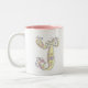 Dekorative handgezeichnete Hauptstadt J Tasse. Hübsches handgezeichnetes Design mit Herz und Blume. © Unique typography art and design by Sarah Trett. www.sarahtrett.com für www.mylittleeden.com on zazzzzle