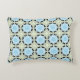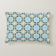 A decorative pillow featuring a symmetrical geometric pattern with blue, white, and brown hues shown from the front and back on a gray background.