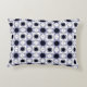 A decorative pillow featuring a symmetrical geometric pattern with blue, white, and brown hues shown from the front and back on a gray background.