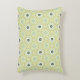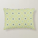 A decorative pillow featuring a symmetrical geometric pattern with blue, white, and brown hues shown from the front and back on a gray background.