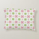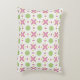 A decorative pillow featuring a symmetrical geometric pattern with blue, white, and brown hues shown from the front and back on a gray background.