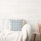 A decorative pillow featuring a symmetrical geometric pattern with blue, white, and brown hues shown from the front and back on a gray background.