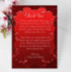 Machen Sie Ihre Dankbarkeit unvergesslich mit unserer dekorativen Red Wedding Dankeschön Card. Diese Karte mit ihren aufwändigen Details, die an altmodische Pergamentrollen erinnern, zeichnet sich durch eine atemberaubende Dekoration aus, die eine Touch Vintager Eleganz verleiht. Personalisierte Details werden elegant in einem Schriftart mit weißer Schrift präsentiert, was einen auffallenden Kontrast zur reichen roten Kulisse schafft. Egal, ob Sie sich für Geschenke oder Präsenz bedanken, diese Karte strahlt Wärme und Wertschätzung aus. Erhöhen Sie Ihre Botschaft mit zeitlosem Stil und Stimmung.