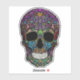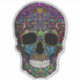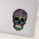 Ein sehr fantasievoll dekorierter Schädel in Tonnen von Farben und Punkten.