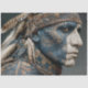 decoupage indian art, American Indian warrior art, tribal chief portrait, ceremonial face paint design, feathered headdress imagery, indigenous cultural attire, spiritual leadership symbolism, handcrafted heritage scene, celestial tribal motif, traditional beadwork and feathers, sacred ancestral representation.