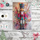 This vibrant nutcracker blends tradition with candy-coated whimsy—dressed in a teal and red jacket, gold-trimmed boots, and a tall blue hat. Surrounded by candy canes and lollipops, he stands against a splash of festive color with a stern gaze and classic white beard. Perfect for decoupage, mixed media, or furniture art that adds playful energy to your holiday creations.