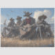This surreal panel features five skeleton cowboys mid-performance on a grassy plateau, each strumming guitars and banjos beneath a dramatic desert sky. Dressed in tattered Western gear—wide-brimmed hats, boots, and bandanas—they stand against a backdrop of mesas, winding rivers, and distant buttes. A lone bison watches from the horizon, adding depth to this eerie yet soulful scene. With dynamic clouds and rugged terrain, this piece blends Americana grit with supernatural storytelling.