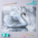 Das Bild zeigt einen anmutigen weißen Schwan mit teilweise ausgebreiteten Flügeln, der auf einem ruhigen Gewässer gleitet. Der Hintergrund ist ätherisch, mit weichen, verschwommenen Elementen, die an Schilf und Blume erinnern, und schafft eine traumhafte und ruhige Atmosphäre. Die Reflexion des Schwans ist im Wasser sichtbar, was die Ruhe der Szene noch verstärkt. Dieses Bild ist interessant und relevant wegen seiner Darstellung von natürlicher Schönheit und Eleganz, oft symbolisiert Reinheit und Grazie. würdevollem Weißen Schwan, Schwan mit Flügeln verteilt, ruhiges Gewässer, ätherischer Hintergrund, träume Atmosphäre, weiche verwinkelte Schilf und Blume, ruhige Szene, Schwan Reflexion, natürliche Schönheit, Eleganz, Reinheit, RHDezeichen von 2chattychicks.
