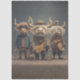 This whimsical panel features three shaggy Highland cows transformed into rockstars, each dressed in bold, vintage-inspired outfits and armed with musical instruments. From denim jackets and gold chains to top hats and scarves, these bovine performers bring swagger and soul to the stage. One cow strums a banjo, another rocks an electric guitar beside a mini amp, and the third blows a trumpet with a sidekick drum at its hooves. Set against a misty neutral backdrop, this trio blends rustic charm with musical mischief.