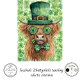 Ein verspieltes St. Patrick's Day-Decoupage-Design mit einer charmanten Highland-Kuh in festlicher irischer Kleidung. Mit ihrem hohen grünen Zylinder, Shamrock-Brille, Fliege und einem Kleeblattstiel zwischen den Lippen verbindet dieses Design rustikale Farmhouse-Persönlichkeit mit heller Urlaubsfreude. Der geschichtete Kleeblatt-Hintergrund fügt Tiefe und Bewegung hinzu und macht es perfekt für Möbelakzente, Mixed-Media-Kunst, saisonale Dekorationen und wunderliche Bastelprojekte. Kräftige Details und kräftige Grüntöne schaffen einen herausragenden Blickfang, der Humor, Charme und St. Paddy's Day-Magie in jedes kreative Stück bringt.