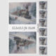 This enchanting winter collage showcases a vintage steam locomotive gliding through a snowy forest under a glowing full moon. Adorned with festive wreaths and garlands, the train radiates holiday cheer as a joyful dog races alongside, adding playful energy to the serene scene. With mirrored layouts and coaster-sized versions, this design is perfect for seasonal crafting, gift sets, or whimsical storytelling.