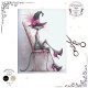 A slender cat lounges with aloof elegance, dressed in a crooked witch hat adorned with pink feathers and a rose. Polka-dot heels, a pink bow, and a decorative chair complete the look. Perfect for decoupage, mixed media, or furniture art that celebrates feline fashion, gothic whimsy, and personality-packed storytelling.
