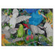 La conception originale de beaux-arts des oiseaux d'animal familier d'ara au cacatoès, au gris africain, au cockatiel, au conure et à d'autres perroquets colorés par l'artiste aviaire Carolyn McFann du studio de ronronnement de deux chats a imprimé sur une planche à découper de qualité.