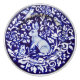 Ein Foto meiner originalen Hasen-Kunst auf einer Keramik-Platte macht diese Schubladenpullis mit ihren Lichtreflektionen dimensioniert aussehen! Ein Kaninchen, Vögel und geschliffene Blätter in Kobaltblau auf Weiß machen diese Knöpfe zu einem großartigen Dekor.