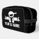 DeeJay Toiletry Tragebeutel mit DJ-Namen. Personalisiertes Dopp-Kit. Schwarzweiß-Design.