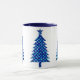Tasse in einer klassischen Silhouette eines Weihnachtsbaumes in dunkelsaphienblau, gemustert mit satintexturierten Sternen in Aqua und Eisblau