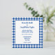 Erstellen Sie Ihre eigenen personalisierten tiefblauen und weißen Gingham karierten Muster Hochzeitseinladungen. Erstellen Sie ein benutzerdefiniertes Design, um Ihre Hochzeitspalette durch Ändern der blauen Hintergrundfarbe. Sie können auch einen anderen modernen Kalligraphie-Schriftart-Stil versuchen, um den persönlichen Stil der Braut und Bräutigam zu entsprechen. Der blaue Rahmen und die weiße Farbe des Quadrat-Overlays für den einladenden Text können angepasst werden.