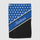 Deep Blue Polka Dot Black Diagonal Script Name Golfhandtuch