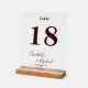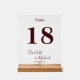 Make your wedding reception stand out with our Deep Burgundy Elegant Wedding Table Number Acrylic Sign! This beautifully designed sign can be customized with the names of the bride and groom, as well as the wedding date and table number, adding a personal touch to your special day.