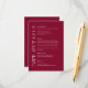 Share all your important wedding information in a timeless and elegant way with this Burgundy Wedding Details Card. Designed with a rich burgundy background and classic serif typography, this formal insert card is perfect for including reception details, hotel accommodations, RSVP instructions