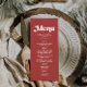 Dieses "Deep Red Christmas Wedding Menu" eignet sich hervorragend für eine Winterhochzeit und ergänzt die Ästhetik Ihrer Winterhochzeit um eine Touch von Eleganz. Das weitläufige Bordeaux-Design ergänzt Ihre Hochzeitspalette im Winter und macht sie zu einem herausragenden Stück unter Ihren Weihnachtsdekorationen. Ob Sie eine Weihnachtsfeier oder eine Moody-Hochzeit im Herbst planen, dieses Menü Krawatte Ihr weinrockiges Hochzeitssmotiv stilvoll zusammen und bietet Weihnachtsvorstellungen und Hochzeitsvorstellungen.