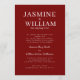 Celebrate your love story with this classic and elegant wedding invitation. Featuring a deep red background and sophisticated white script font, this design exudes timeless romance. The clear layout ensures all essential details of your special day are beautifully presented, from the names of the happy couple to the ceremony and reception information. It's the perfect way to set a refined tone for your wedding. This invitation is designed to impress your guests and make your wedding announcement truly memorable.