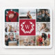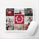 Elegantes Foto-Collage-Mauspad, bedruckt mit einer Familienkollage, die Ihren Anfang in einem weißen Lorbeerkranz auf einem tiefroten Hintergrund mit einem weißen Rand um die gesamte Collage mit abgerundeten Ecken umgibt. Ein tolles Geschenk für Mama's Büro oder Papa's Office!