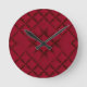 Deep Red Quilted Leather Pattern Runde Wanduhr