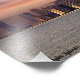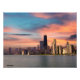 Ein tiefes Sonnenuntergang über der Skyline von Chicago und ein atemberaubendes, hängendes Kunstwerk für die Wohngestaltung