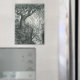 An intimate view deep in a shadowed forest. Black charcoal on off-white strata. From original drawing by Amanda Diehl.