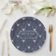 Diese Papiertafel weist ein trendiges Hirschkopfmuster mit kurvenreichen Vorhängern, stilisierten Pfeilen und winzigen Schneeflocken in himmelblauen Farbtönen auf, die auf einem marineblauen Hintergrund geschossen werden. Der optionale Text 'Happy Holidays' und ein Label wurden bereitgestellt, um Ihren Namen und/oder anderen Text hinzuzufügen. Suchen Sie ID861 durch ID864, um weitere Farboptionen und andere Produkte in diesem modernen, weihnachtlichen Design-Set zu sehen.