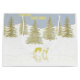 This Gold-Mosaic, graphic drawing, depicts a Doe, and her fawn, taking a drink, from a reflecting pool, surrounded by, a snowy, backdrop-of glittering, gold trees, under a shining, star.