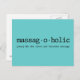 Wer sagt, Massagetherapeuten können nicht angesagt und friedliebende Hippies gleichzeitig sein? Der Designer der Rubs to Riches Produktreihe widerspricht. Sie hat Einflüsse aus der Pop-Kultur, Rock'n'Roll und sogar Graffiti-Kunst gewonnen, um neues Leben in lange stehende Massage Therapy Industry Insider Witze zu atmen. Diese Massagogerprodukte wurden durch den populären Satz "Ich bin massageabhängig" beeinflusst und mit dem Schriftart der Maschinenschreiber aus der Mitte des Jahrhunderts verschmolzen. Mit diesen humorvollen und angesagten Produkten, die Menschen dazu bringen sollen, fragen "wann kann ich mit Ihnen Termine vereinbaren und einen Termin vereinbaren?"