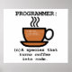Ein Witz über die Definition eines Programmierers: "Programmierer ist eine Art, die Kaffee in Code verwandelt". Einfach aber auf das Ziel drücken. Neben der persönlichen Sammlung können Sie dieses Plakat als besonderes Geschenk für Ihre Freunde nutzen: IT-Personal, technische Unterstützung, oder nur jemand um Sie herum, der seine Augen nicht den ganzen Tag von seinem LCD-Bildschirm ablenken kann, die ganze Nacht über, begleitet von einer frischen Tasse Kaffee.