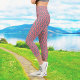 Mesdames Capri Leggings. Dessine dans un motif de flèches roses et grises. Un motif répétitif de zags zig-zags crée un design régulier audacieux. Les couleurs sont gris et roses.