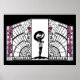 Diese fabelhafte Komposition ist ein interessanter Blick auf einen Deko-Klassiker - eine Badeschönheit mit einem Sonnenschirm in der Silhouette. Auf beiden Seiten flankiert sie mit fesselnden Fans und kleinen Wirbel mit Blume im Deko-Stil am links und rechten Rand. Schwarz mit weißem Hintergrund, mit Blumenmotiven in Pink und Purpur.