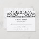 Diese elegante, schwarz-cremefarbene Hochzeitskarte, die mit unserem Deko Geblüht Hochzeitseinladung-Set abgestimmt ist, bietet eine verzierte, Vintage, geblüht Abbildung oben mit Ihren UAWG, inklusive Datum und Text, in einem Mix aus Deko und Schriftzeichen.