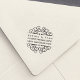 Fügen Sie Einladungen, Karten und Korrespondenz handgestempelten Charme hinzu mit unserer Art Deko inspiriert Rücksendeadresse Briefmarke. Design zeigt Ihre Namen und Adressdaten in Deko-Stil Typografie, flankiert von verzierten Vintagen blüh-Illustrationen. Koordiniert mit unserem Deko Blühe Einladungen.