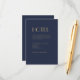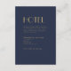 Dieser Deko vom Goldtyp | Dunkle Marine Hochzeitshotel Umschließungskarte spricht von einer minimalistischen, aber eleganten und königlichen, traditionellen und klassischen Hochzeit. Das einfache und schlichte dunkle, staubige Marineblau mit der Goldtypografie im antiken Deko-Stil ist ein formellerer, klassischer Luxus, während es für Ihre - Ehefeier Dekoration minimal und vielseitig bleibt.