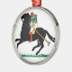 Kunst-Dekoentwurf eines schwarzen Pferds mit einem Polospieler, der es reitet, kleidete im Rot und im Grün an