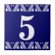 Kunst-Deko-Zahl-Fliese - Weiß auf Blau mit der Grenze eines Druckers